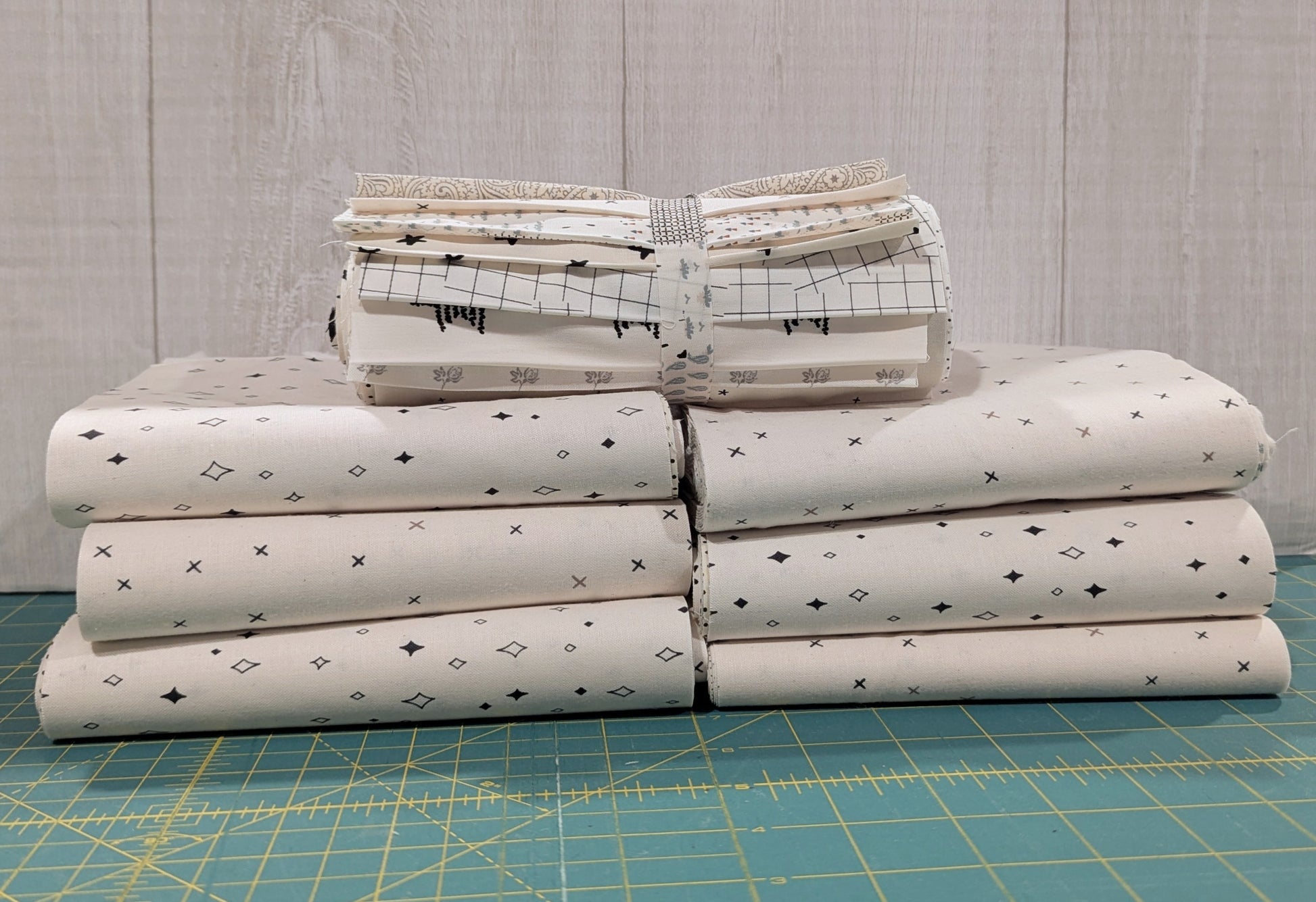 Scrappy Roll of quilting cotton prints from various designers and brands that are low volume black & white or grey prints