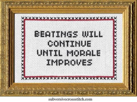 Motivational workplace art! Deluxe kit includes material, thread, full color pattern, instructions, two needles and a hoop. Kit photos are an example of packaging and kit contents but will come with pattern in main photo. Design area size on 14-count material: 3.79" x 5.71". Gold frame not included!