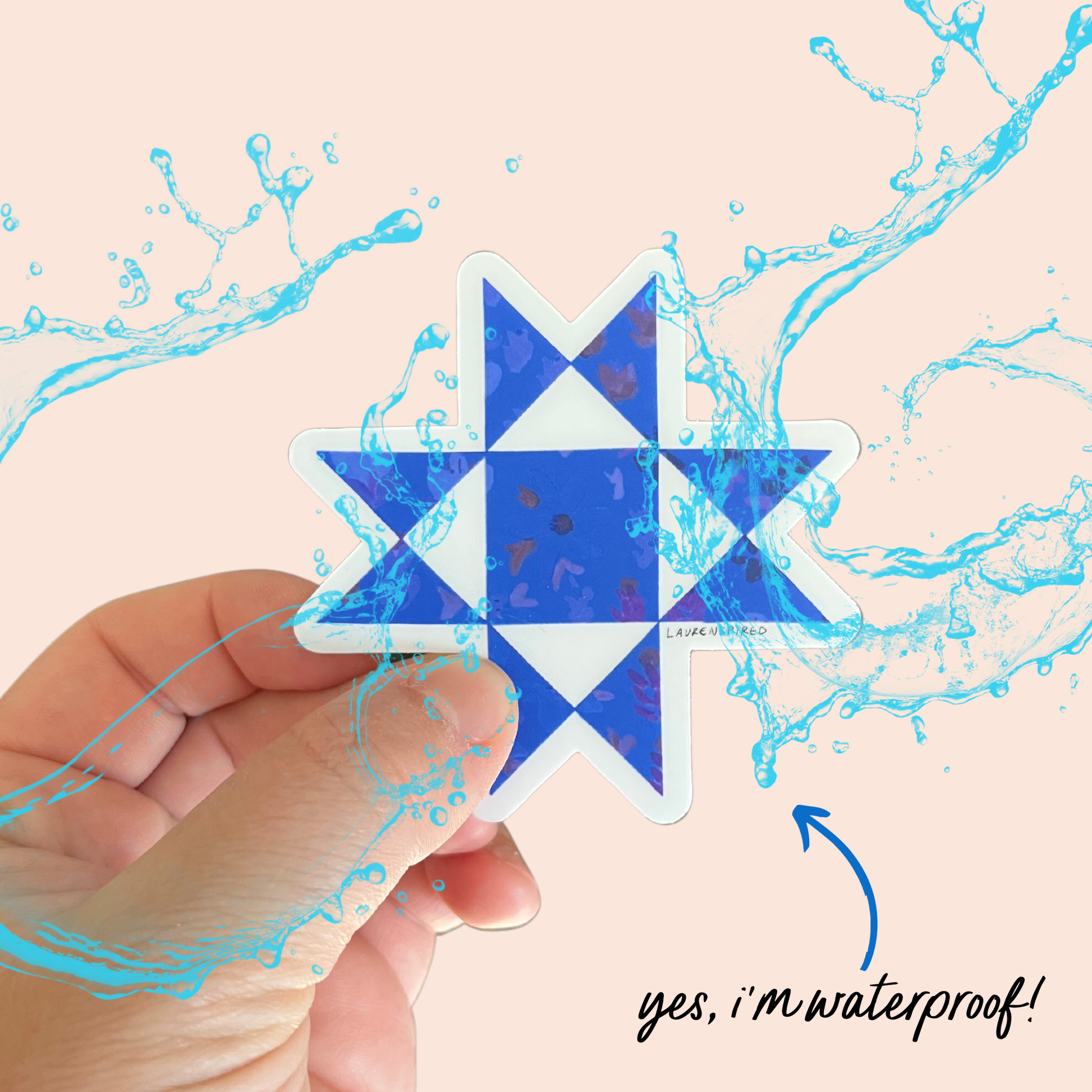 Ohio Star Quilt Block Vinyl Stickers [Sewing Stickers, Quilting Stickers, Quilt Lovers Gift, Sowing Machine Sticker, Sewing Decal, Boho Stickers] Blue Ohio Star Quilt Block Sticker for sewing machine, water bottle, laptop, kindle, journal, window, or other smooth surface. Perfect for adding a personalized touch to your belongings or as a gift for the quilting lover in your life. LISTING IS FOR 1 STICKER Details: -3 x 3 inches -clear background -waterproof -high quality, flexible, tear-proof vinyl Also available is red and green.