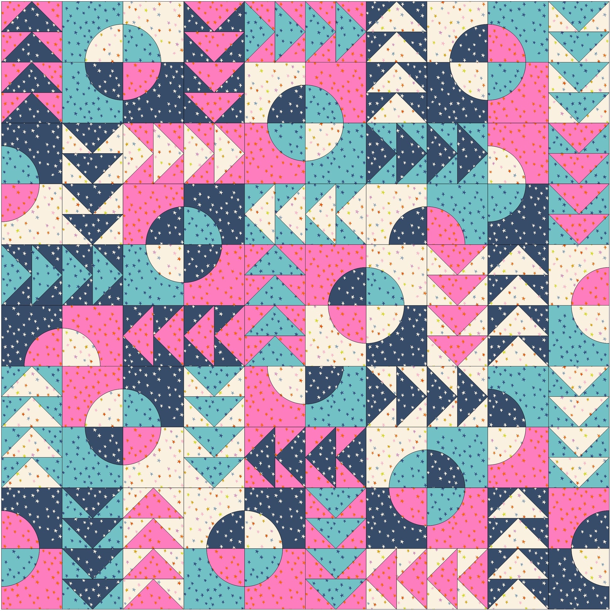 This kit will make a Square Throw size (approx. 60"x60") quilt top of the Carrol's Garden pattern (sold separately by Compass & Wildflower Studio)