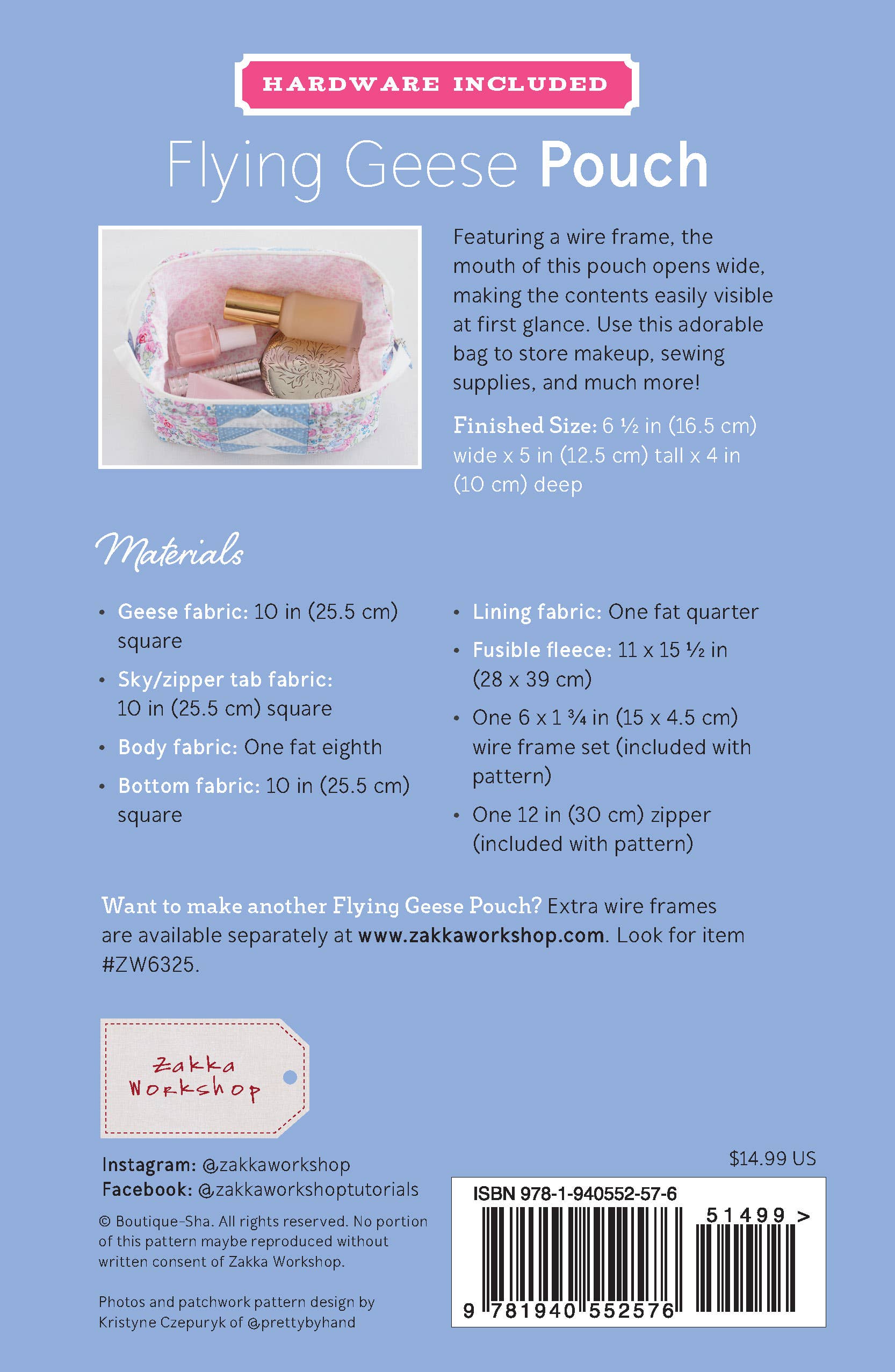 Featuring a wire frame, the mouth of this pouch opens wide, making the contents easily visible at first glance. Use this adorable bag to store makeup, sewing supplies, and much more! Finished Size: 6 ½" (16.5 cm) wide x 5" (12.5 cm) tall x 4" (10 cm) deep. Kit includes: pattern, 6" (15 cm) wire frame set, and one 12" (30 cm) zipper. Extra wire frames are also available separately. Look for item #ZW6325.