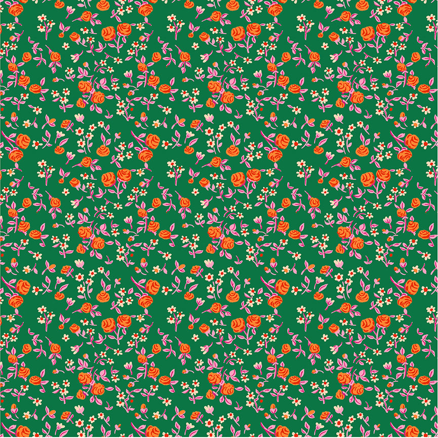 Mousey Floral in Emerald colorway for the Heather Ross By Hand Collection by Heather Ross for Windham Fabrics