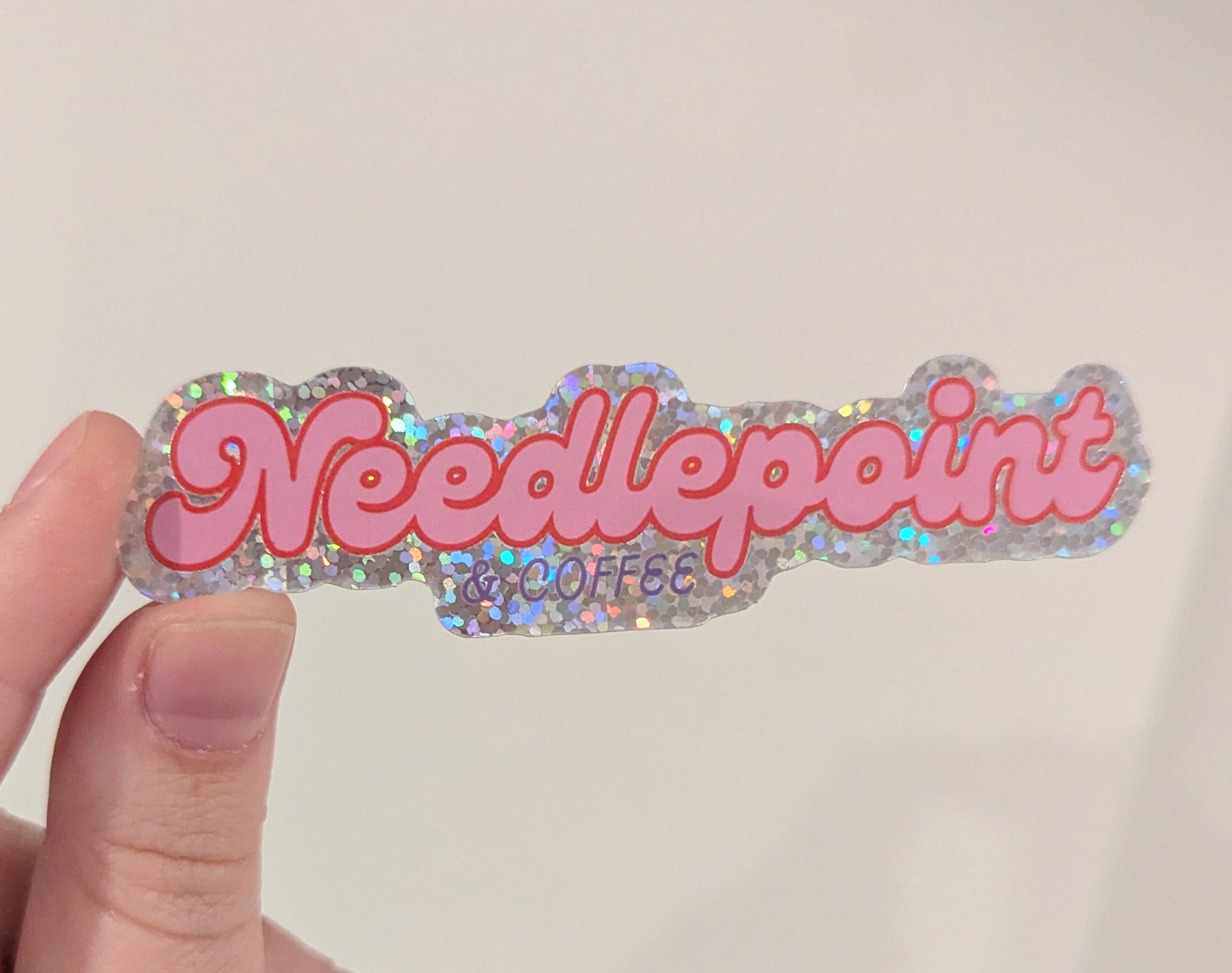 Needlepoint & Coffee Glitter Holographic sticker changes colors as the light hits the holographic glitter material