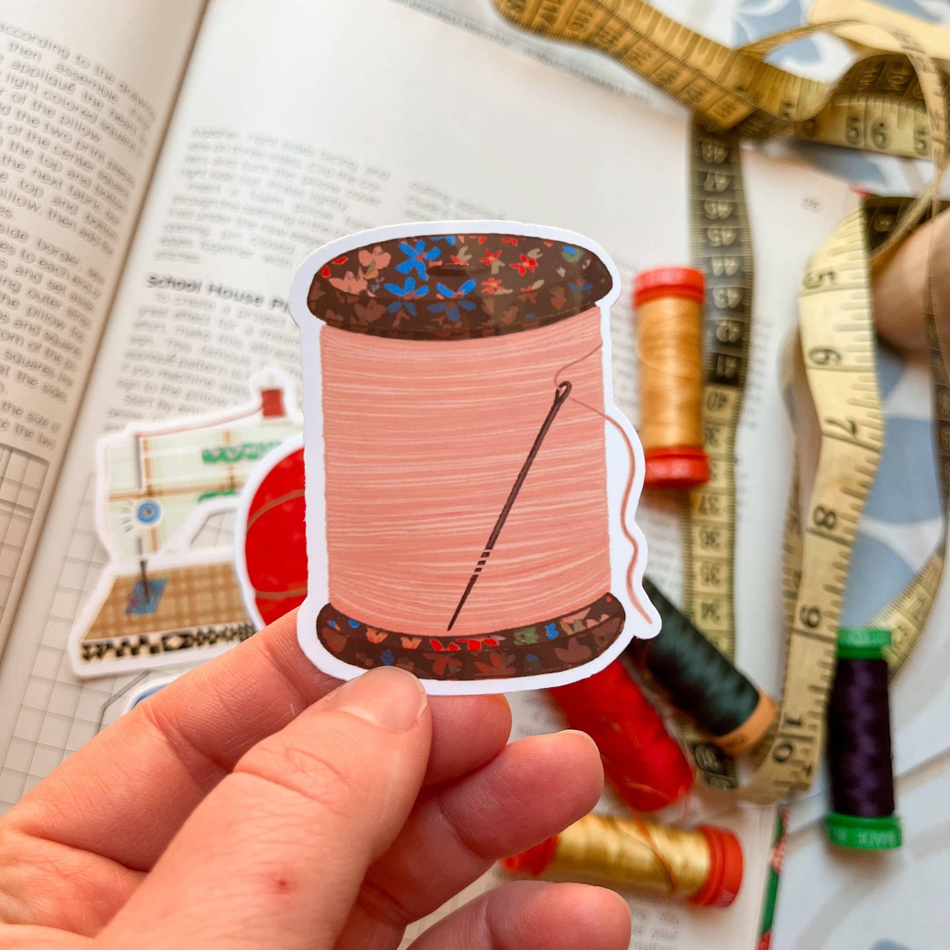 Spool Of Thread Vinyl Stickers, Cute Quilt Sewing Stickers, Sewing Machine Sticker, Sowing Machine, Gift For Seamstress, Needle And Thread Cute Needle & Thread Decal for a sewing machine, water bottle, laptop, kindle, journal, window, or other smooth surfaces. Colorful & sweet dewing decal, perfect for adding a personalized touch to your belongings or as a gift for the sewing/quilting lover in your life. The listing is for 1 sticker details: -2 x 2.5 inches -waterproof -high-quality, flexible, tear-proof vinyl Woman-Owned Business.